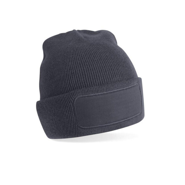 – Strickmütze mit Baumwoll-Twill Emblem (10 x 5 cm) frontseitig für vereinfachte Veredelung