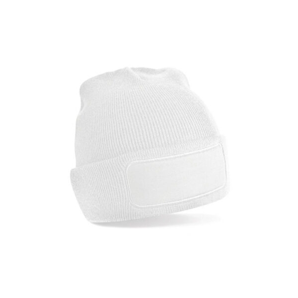 – Strickmütze mit Baumwoll-Twill Emblem (10 x 5 cm) frontseitig für vereinfachte Veredelung